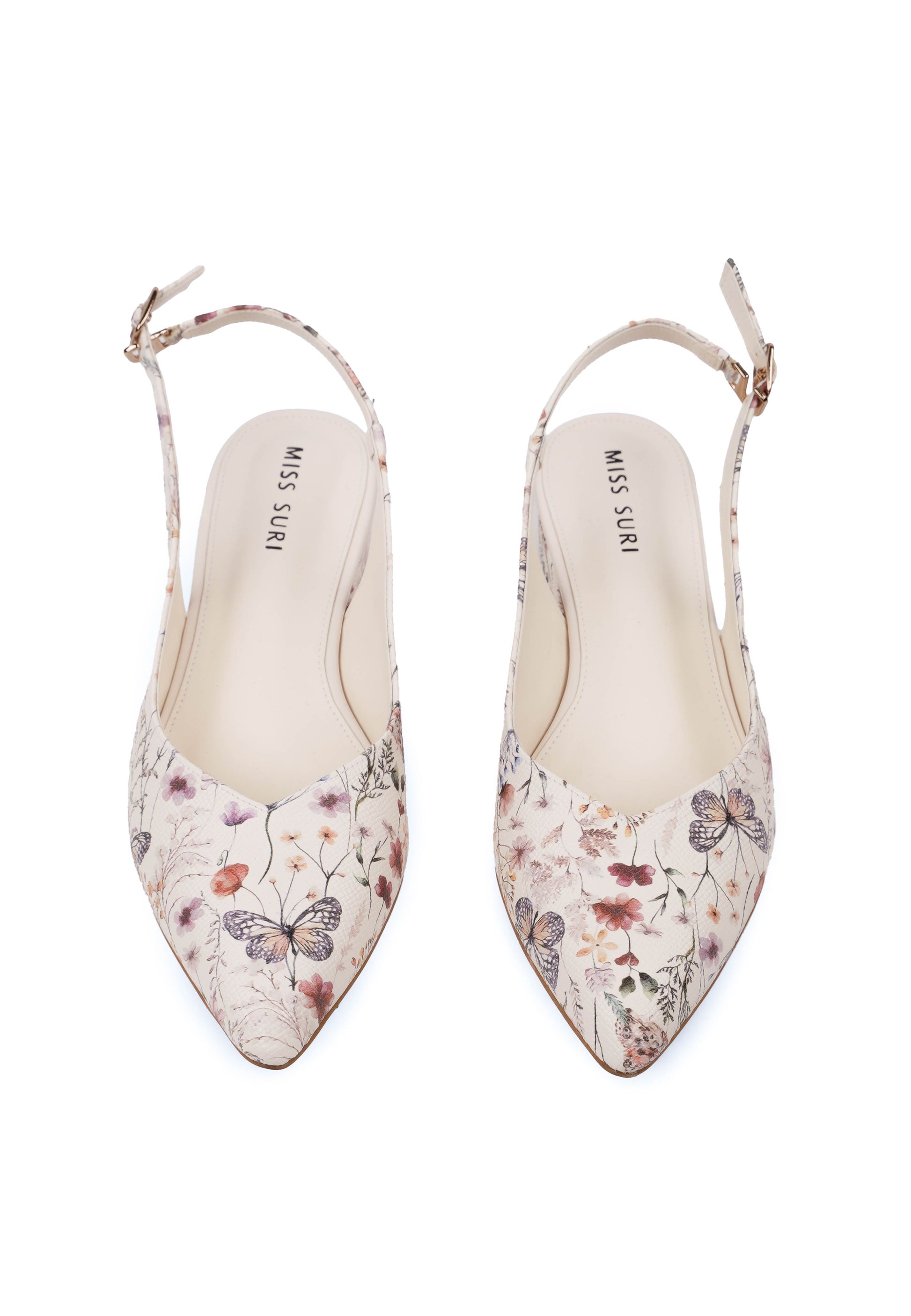 Each set pairs delicate floral heels by SURI with a Paris Royale fragrance
